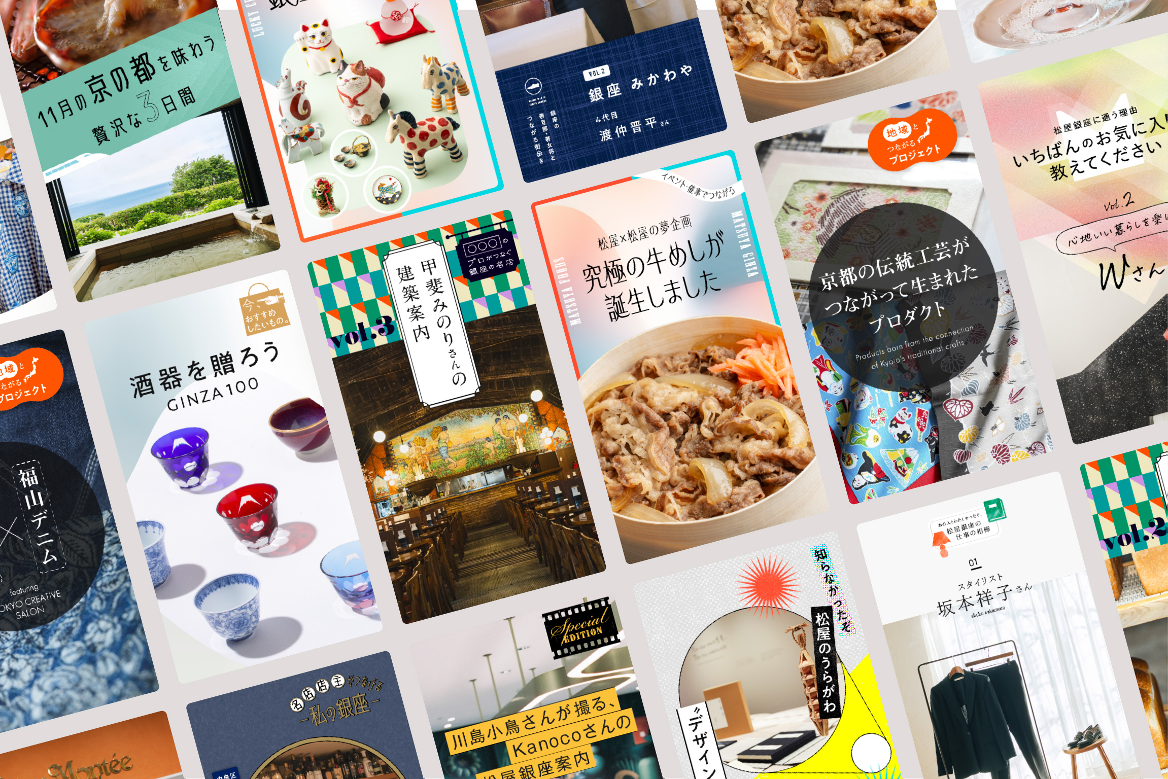 老舗百貨店「松屋銀座」の100周年を記念した特設Webサイトのデザイン制作を担当しました。「つなぐ・つながる・つなげる」というコンセプトのもと、華やかで個性的なデザインに仕上げ、記念すべき節目を盛り上げました。