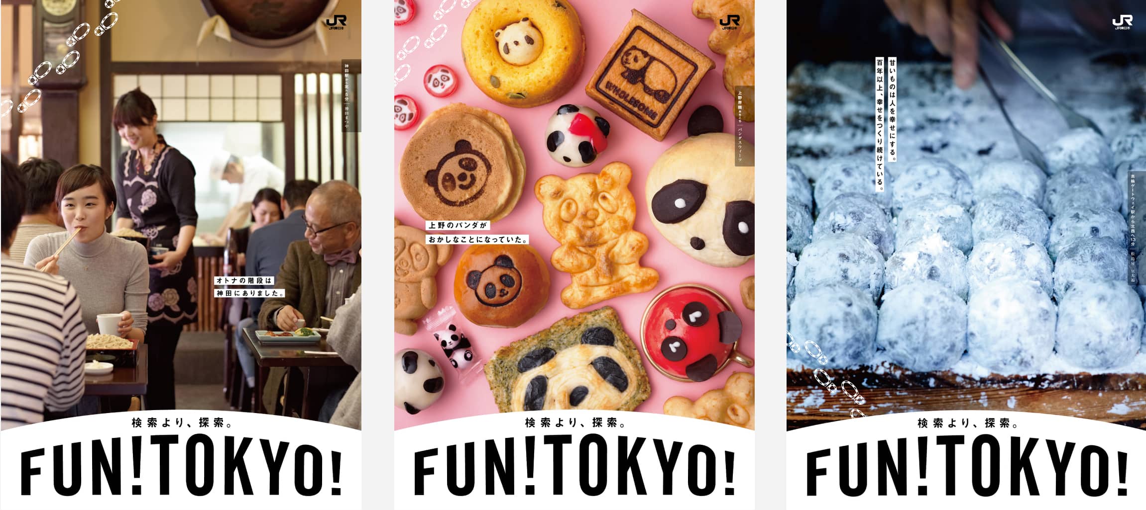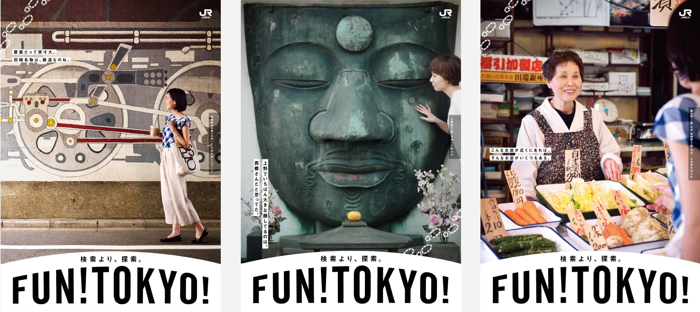 JR東日本さまの施策で、「検索より、探索。」をテーマに、ディープな東京探しを促進するポスター制作が2016年よりスタート。のちに映画コラボ企画やweb制作、電車内映像広告に携わらせていただきました。