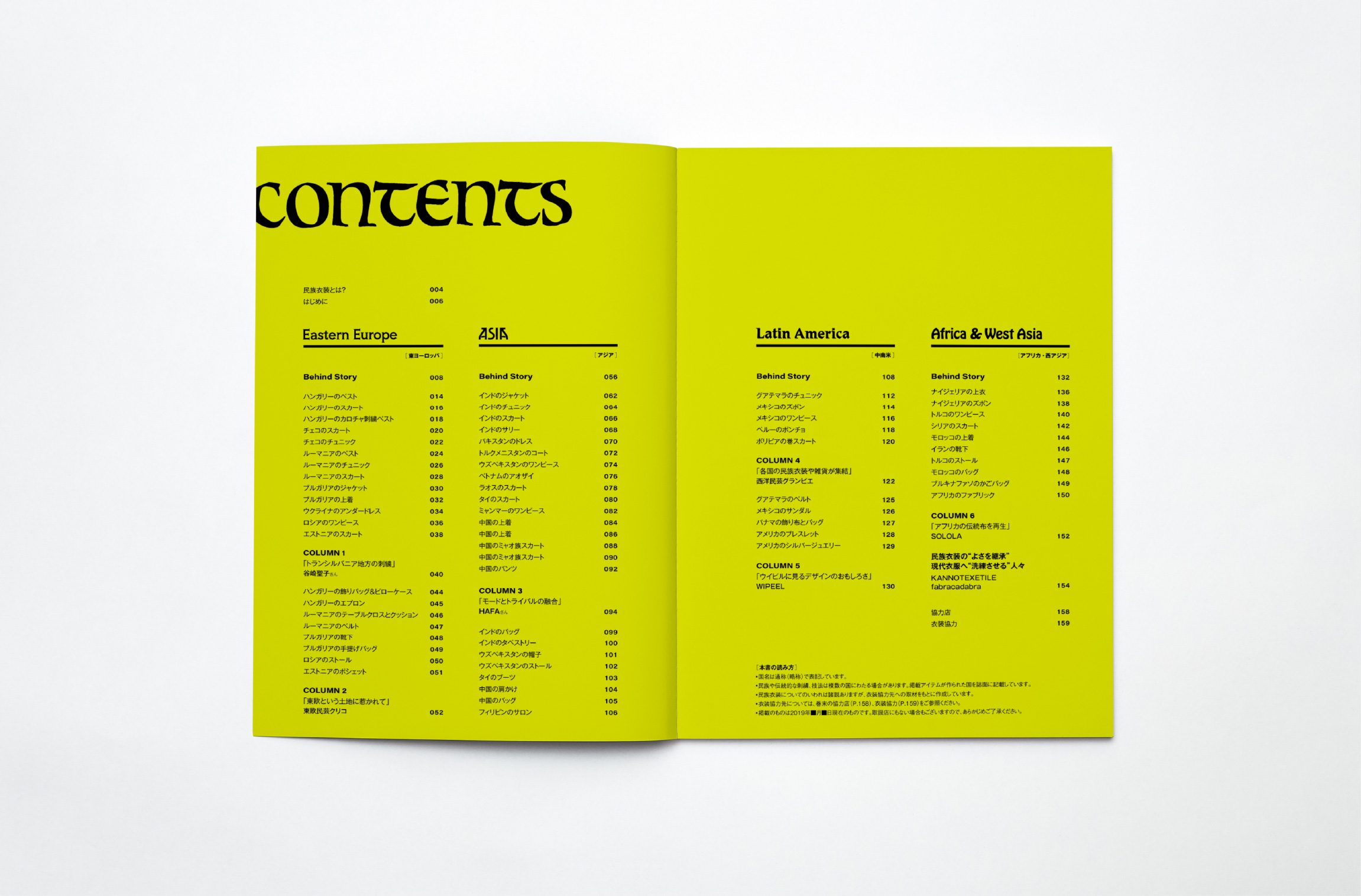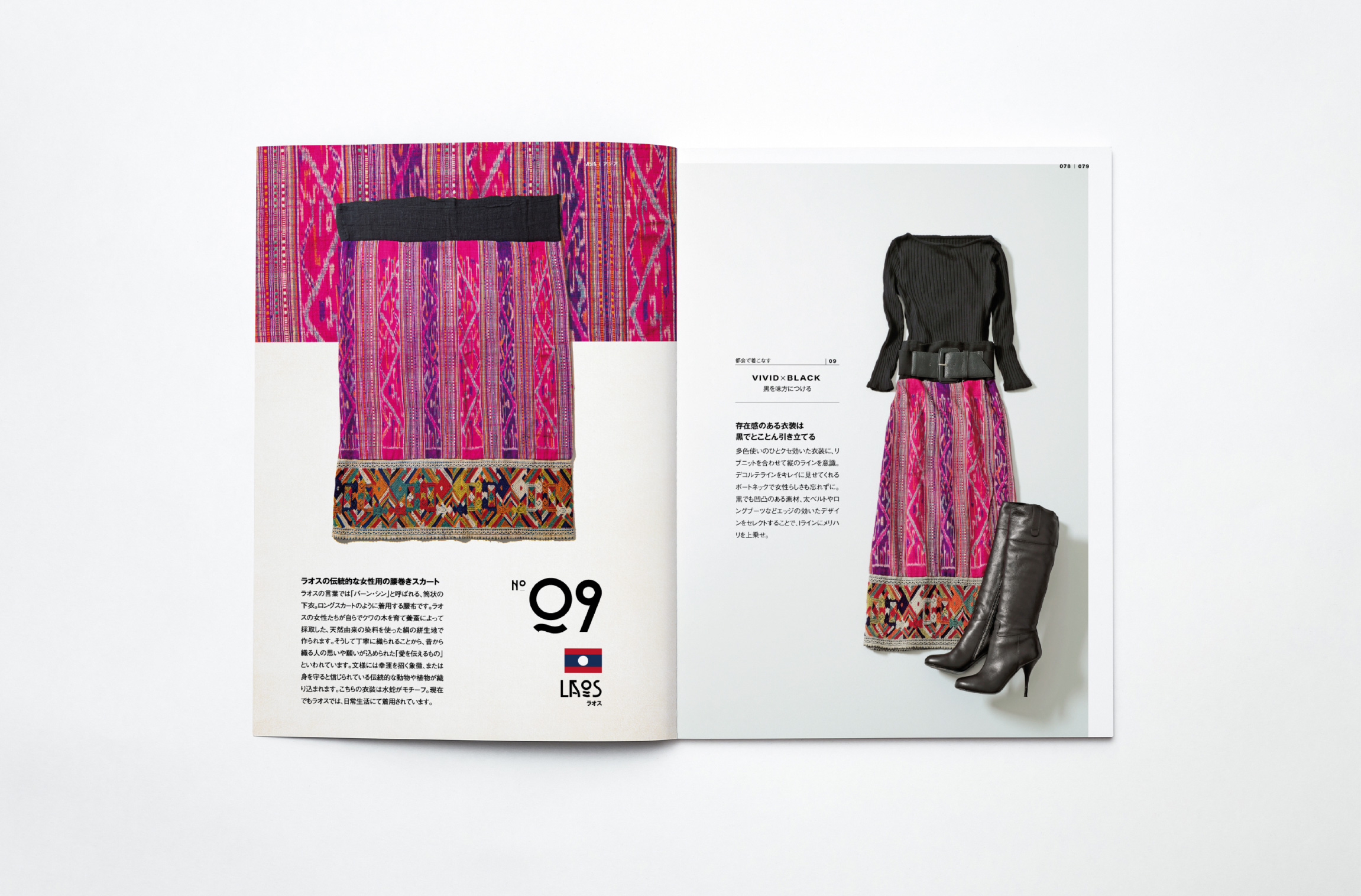 tokaidekikonasu sekainominzokuisho Editorial Design 世界31カ国の民族衣装を“都会で着こなす”がテーマのエディトリアルデザインを担当いたしました。民族的なテイストを出しながら、都会の洗練された雰囲気も出るようにいたしました。 Return