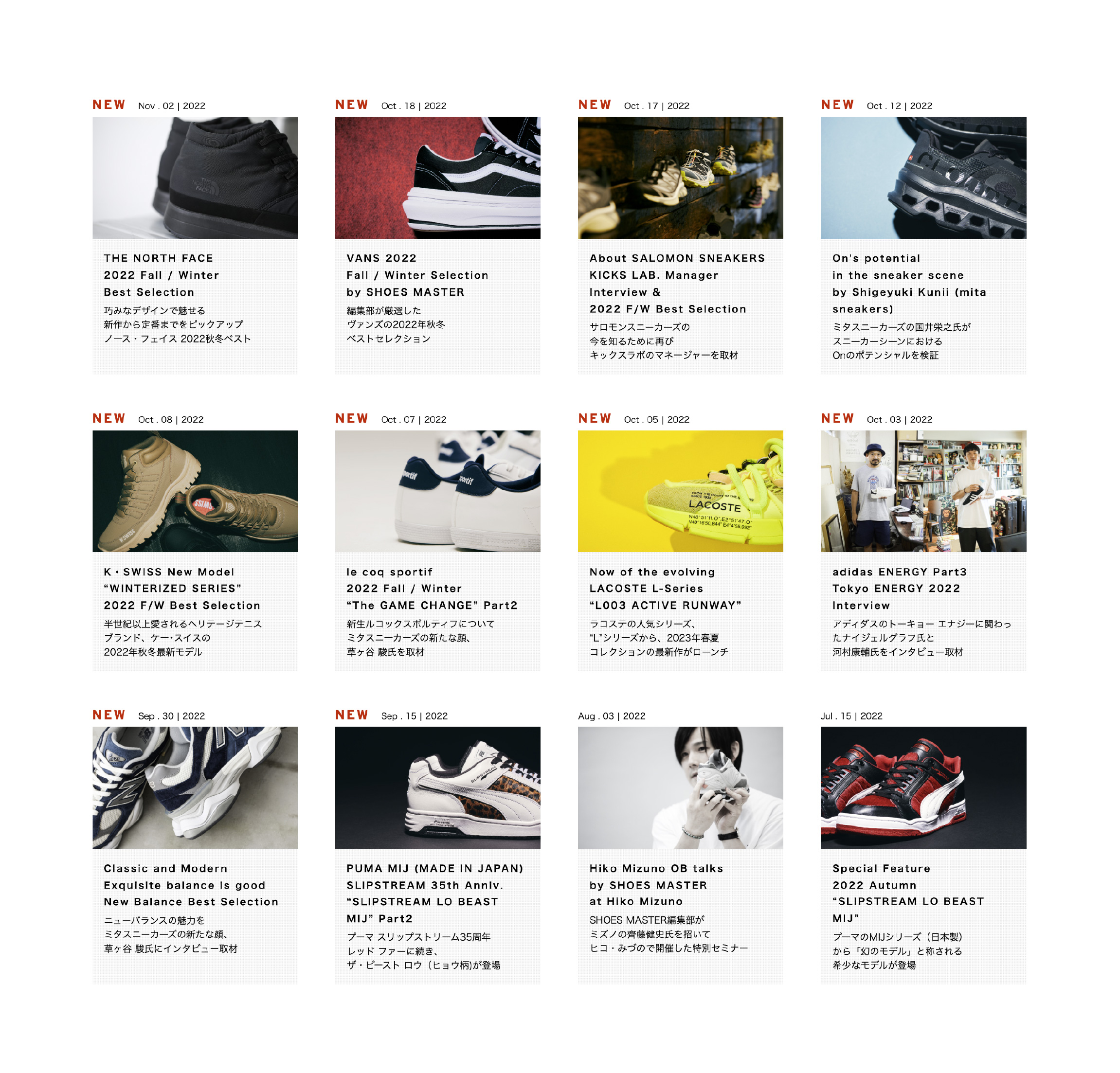 シューズ・マスターは、シューズとスニーカーの専門誌です。2004年の雑誌創刊以来、様々なメディアを通してシューズ&スニーカーカルチャーの「今」を伝えていきます。web制作始め、バナー、ページ更新、運用に携わらせていただいております。