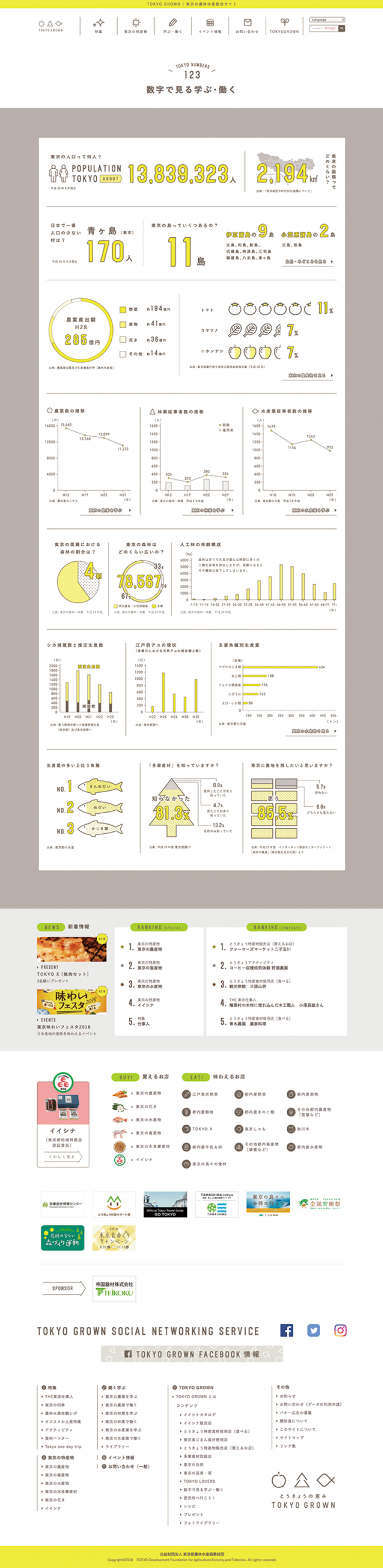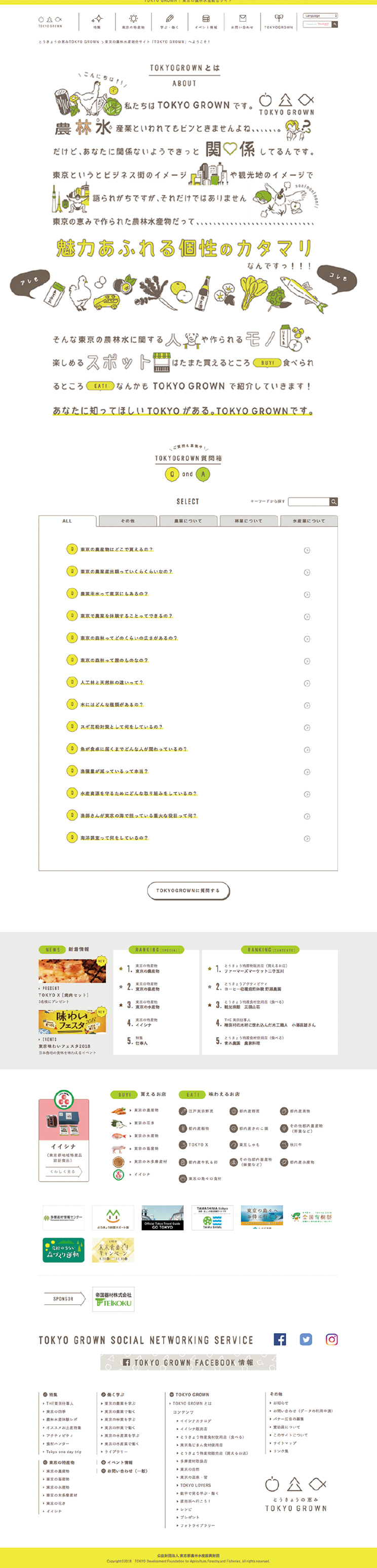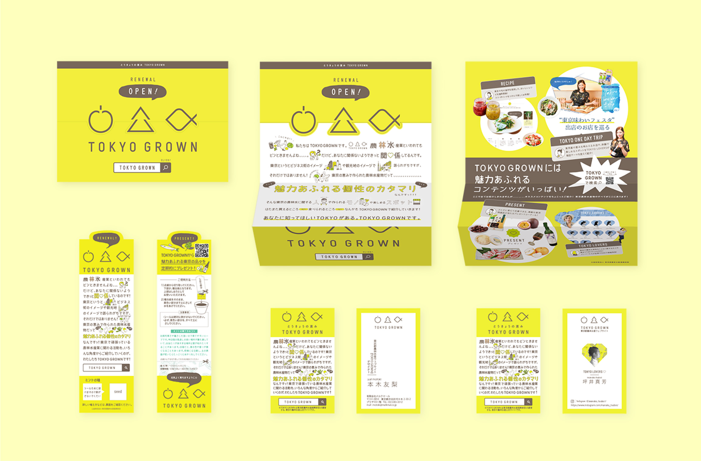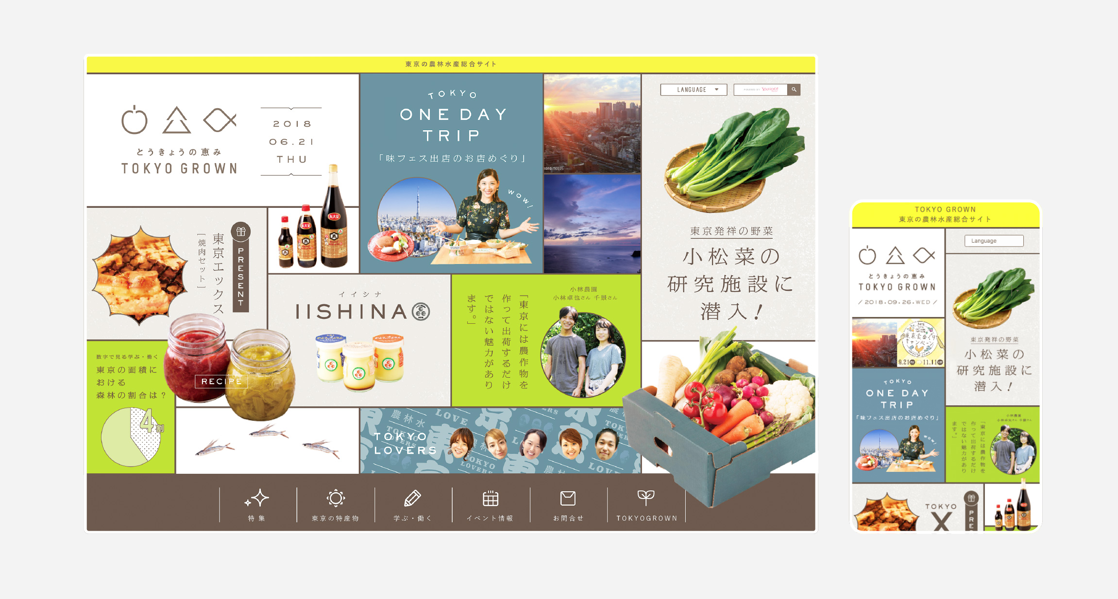 東京で営まれている農林水産業の魅力を広く国内外に発信する東京都の施策「TOKYO GROWN」のウェブサイトのデザインを担当いたしました。ロゴデザインから、配布ツールなどを含めトータルでデザインに携わりました。