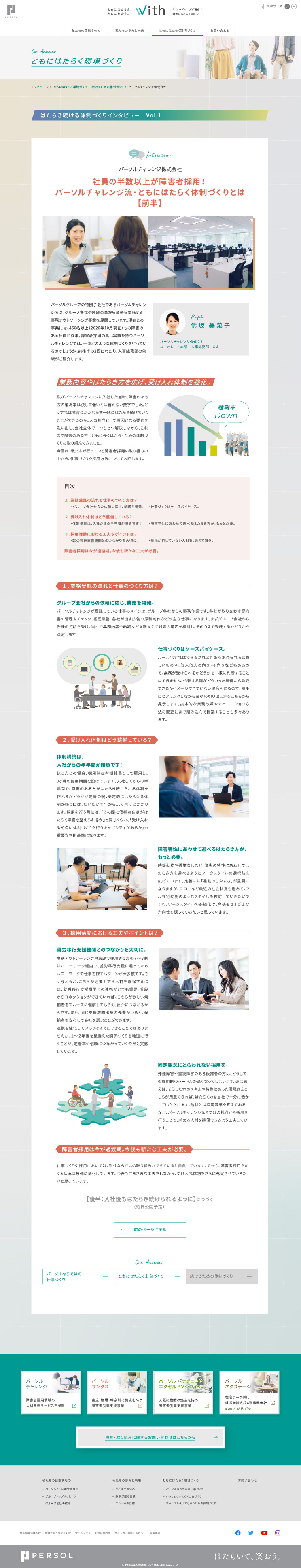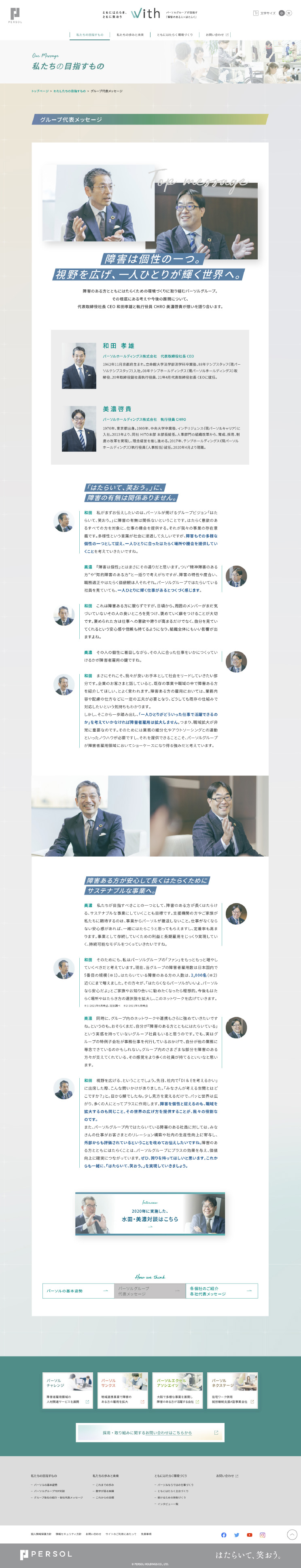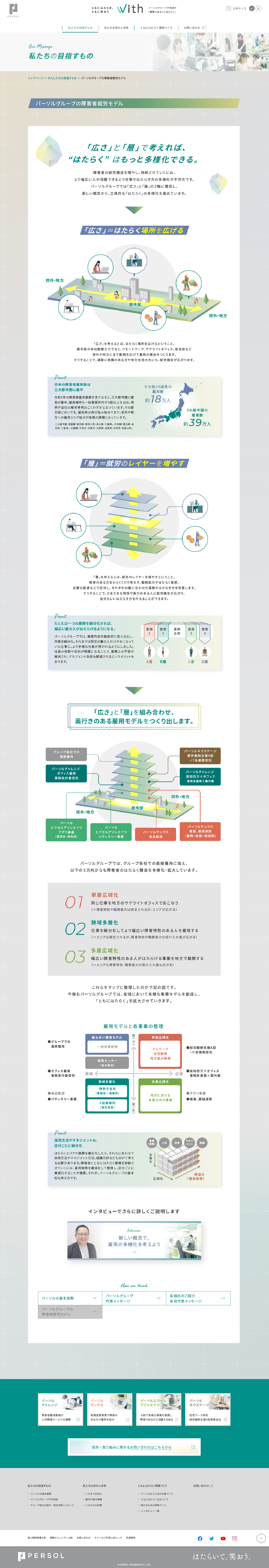 PERSOLグループが目指す、障害のある人と「ともにはたらき、ともに笑おう。」を実感できる社会を実現するための取り組み「With」のwebやパンフレットを制作しました。グラデーションで多様性を表現しつつ、ユニバーサルなデザインを心がけました。